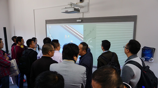 鸿合无尘教室解决方案现场体验,支持多人同时书写!