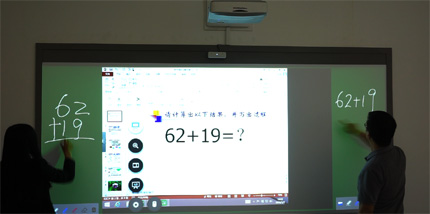 特别值得一提的是,鸿合新一代无尘教室解决方案首度实现了全屏PC信号、全屏黑板书写和PC+黑板三种界面间的自由切换,特别是其PC端+黑板的教学模式,PC画面可左中右随意移动,并支持多点触控、一键自校正等操作,开创了全新的交互教育教学体验。此外,其2万小时以上超长寿命光源、低故障率等特点也是该方案的一大优势。