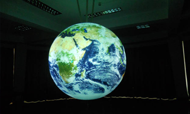 球幕投影技术,投影方式分类,可分为外投方式和内投方式。 外投,就是通过四台投影机从四个方向从外部对球幕进行投影,通过边缘融合技术呈现出球形无缝逼真画面,并能保证画面不变形,画质清晰,色彩艳丽。将外投球悬挂在大厅中,即可创造出超炫动感的视觉效果。 内投,就是将投影仪置于球幕底部,搭配一台鱼眼镜头,将信号反射并投射到球面屏幕显像。内投球装置,凭借其特种功能树脂质地球幕和高流明投影仪的配用,可在球幕表面形成浑然一体的画面展示,并支持多视窗、多画面的展示,能非常稳定、生动地把设计制作好的文字、图案、动画、视频清晰地投射显示出来,营造出超震撼的动态视觉效果。